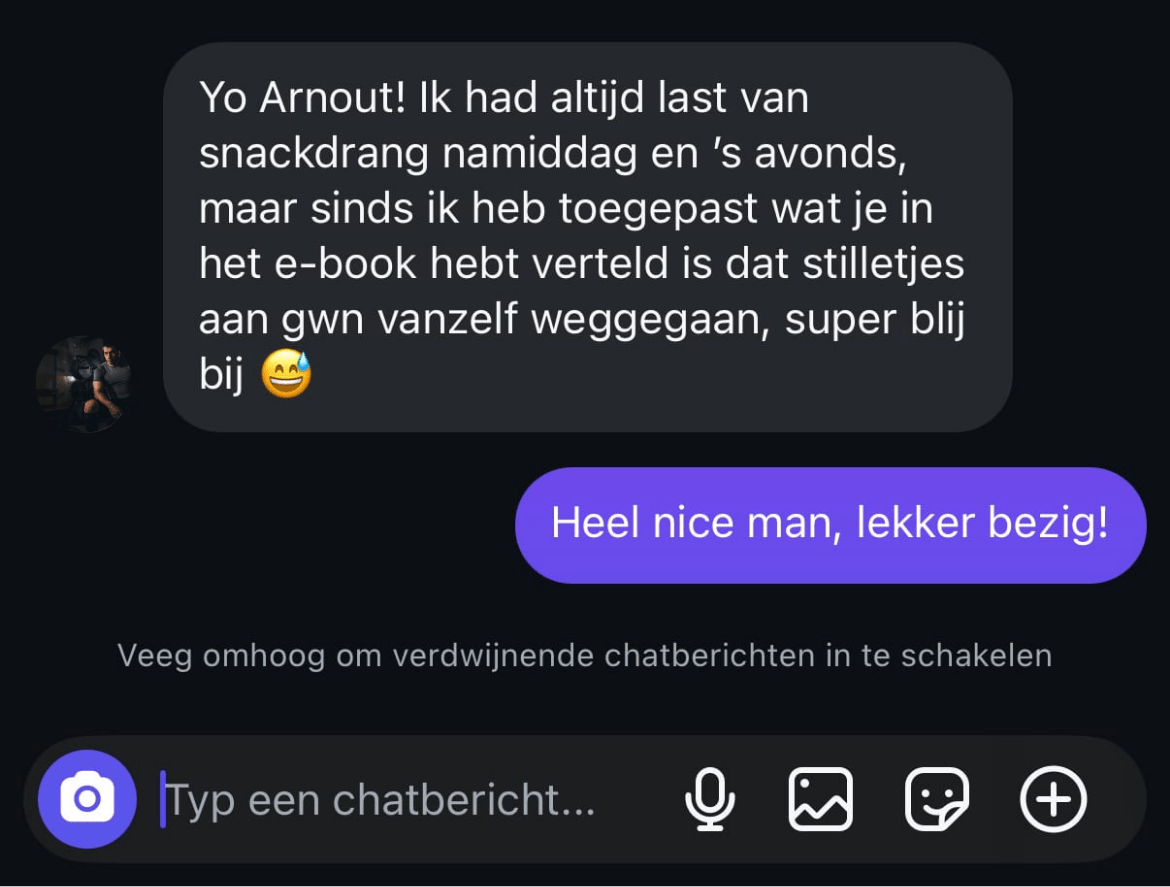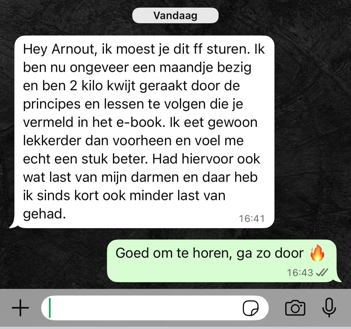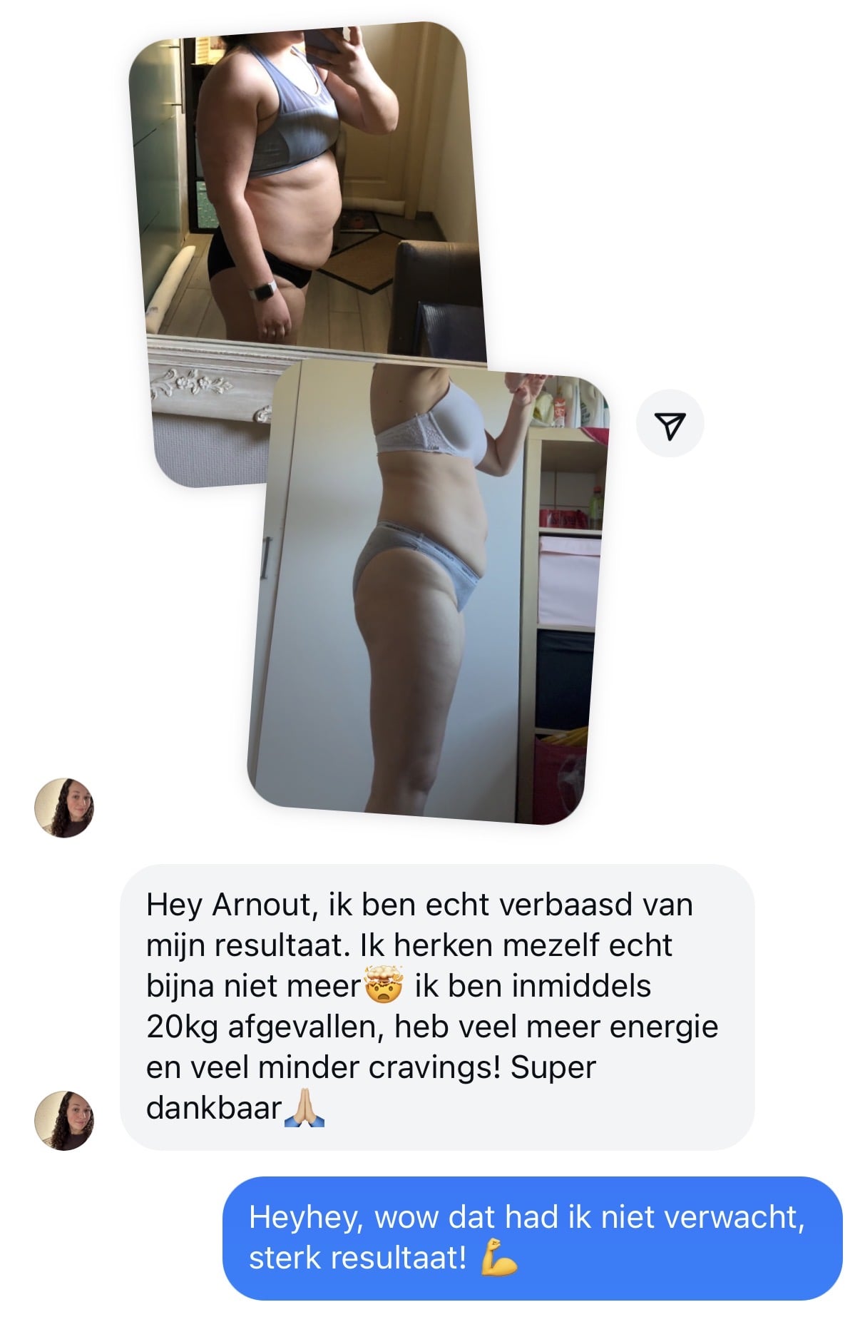 Veel mensen merken binnen de eerste week al verschil: meer energie, minder trek in zoet en misschien dat je kleding wat ruimer begint te zitten. Binnen 30 dagen ervaren veel deelnemers merkbare veranderingen in energie, eetgedrag en hoe ze zich voelen in hun lichaam. Resultaten kunnen variëren per persoon.