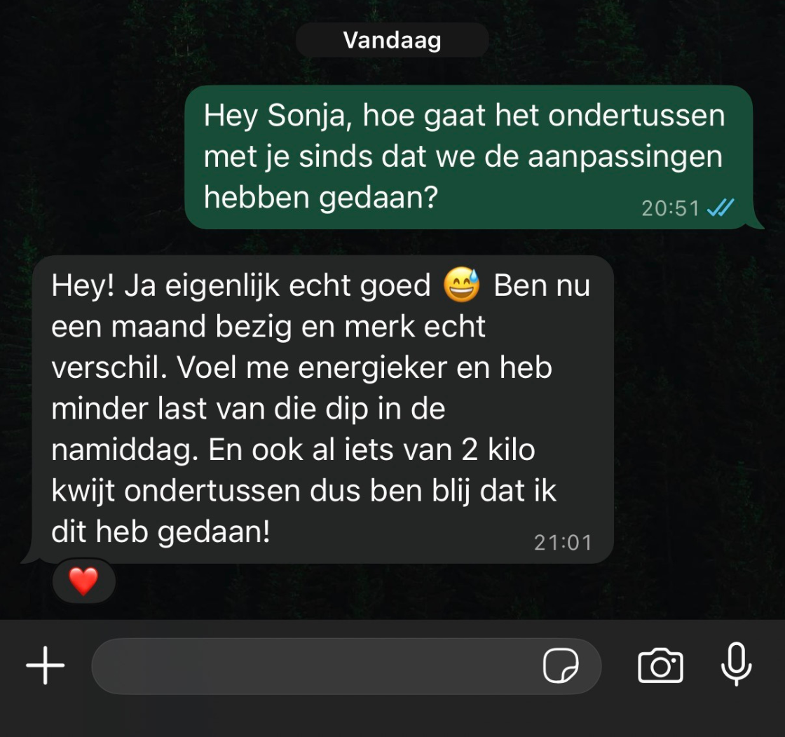 Of het nu gaat om afvallen, energie, nachtrust, stress of snackdrang/cravings. We maken helder wat er concreet moet veranderen om resultaat te krijgen.